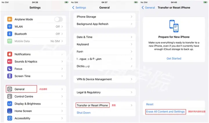 注意:在还原手机时,方便阅读操作可以不设置为英文。